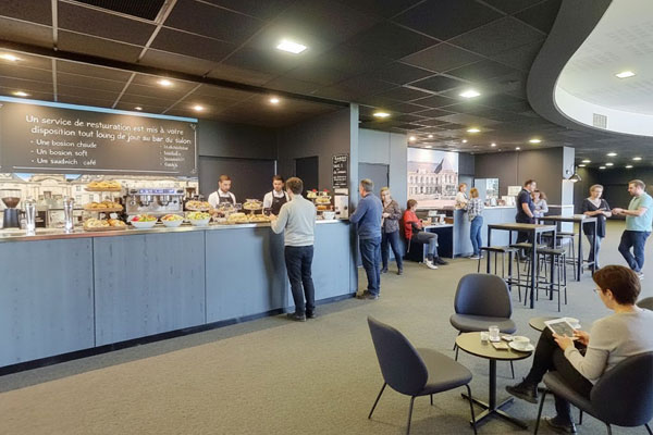 Un service de restauration est mis à votre disposition tout au long de la journée au bar du salon : Une boisson chaude, un petit déjeuner, une boisson soft, une salade, un sandwich, un café …dans une ambiance conviviale au cœur du couloir des loges